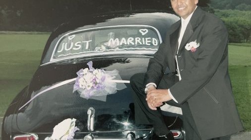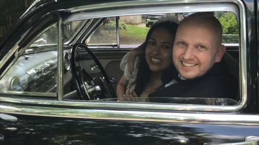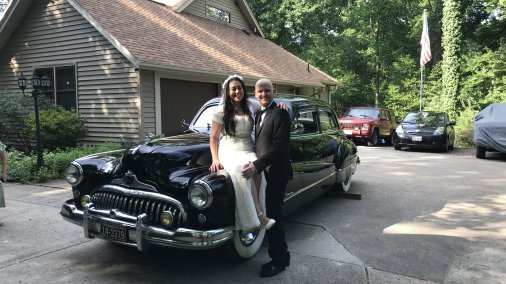 An elegant four-door classic car is perfect for capturing those special moments. Its black and Chrome exterior makes it ideal for your photoshoot.