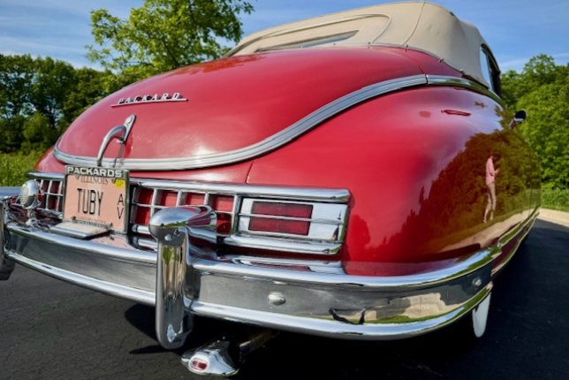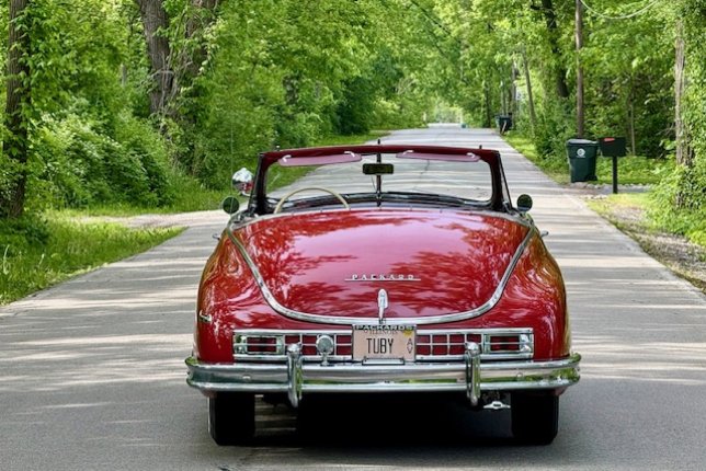 The senior Custom Eight line had the massive nine main bearing 356 cubic inch engine, rated at 160 hp. The 127-inch wheelbase and long nose was used out of necessity. 148-inch wheelbase seven-passenger sedans and limousines were also supplied to order for 1948. 1949 was Packard’s Golden Anniversary year, and the company produced 2,000 cars in custom gold paint.