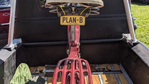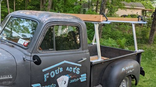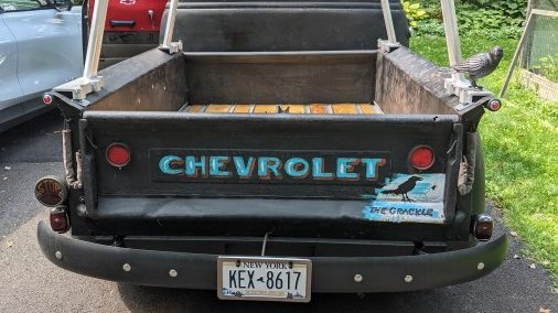 1951 Chevy 3100 Pickup "The Grackle" Restomod/Ratrod. Original Authentic Patina, Chevy 350/300hp, Auto, PS, PB, Front Disc, Borla Exhaust, Electronic Gauges, all new interior with custom racing bucket seats, custom graphics "Four Aces Machine Shop", Spider Caps, wood bed, custom racks (racks can be removed if desired), 1958 Columbia Bicycle included in Standup bike rack. Very striking vehicle, looks and sounds great. Perfect for grand openings or special events.