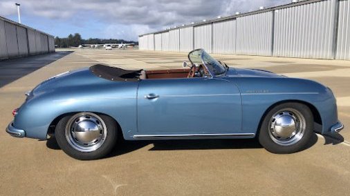 This is a pristine one-of-a-kind 1954 Porsche 356 Speedster replica. This Speedster was created with the rare classic Porsche Aquamarine metallic paint color and Saddle brown leather interior.