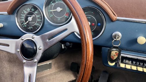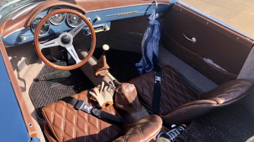 The Speedster has been upgraded with a Dual Carb 1776cc engine (versus the original 1600) and is equipped with a lightweight fiberglass body. The Speedster is also equipped with rear beehive lights, rear deck lid carrera louvers, a Nardi wooden steering wheel, ivory knobs, a Bluetooth vintage radio, diamond-stitched seats, and heater.