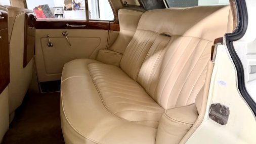 1957 Bentley S1 Saloon in white / beige leather interior, perfect for weddings, events, photo shoots, nights out on the town. Chauffeur-driven with chauffeur in white shirt and black pants, with red carpet available for unrolling and placement from the rear doors for added effect.