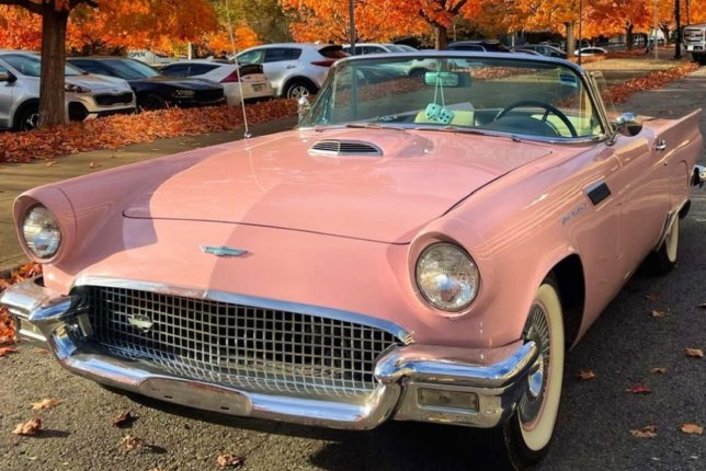 Rent a pink 1957 Ford Thunderbird! Perfect for photo shoots, engagement shoots, wedding shoots, mini sessions, holiday shoots & music videos.