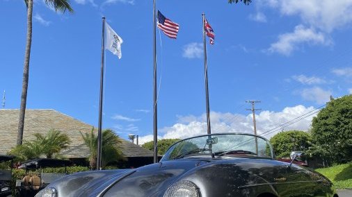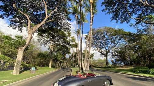 This is a gentleman’s sports car. Sleek dark silver with an elegant burgundy interior, racing style seats and a wood-grained steering wheel, this peppy Speedster evokes James Dean. Hoku loves tight turns and will take you from sea to sky and back again in seamless style.