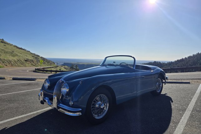 Finished in the lovely color of Cotswold Blue this XK 150 is powered by a 3.4 liter straight six engine. A unique car for events such as engagement pictures. Favorite spots along highway 93 and the foothills.