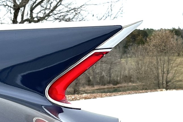 Tailfins: One of its most iconic features is the rear tailfins, which were sharply pointed and much taller than in previous years, making it a visual trademark of the era.