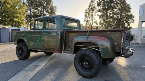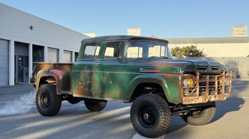 Meet “Tank” our 1960 Mercury M350 Crewcab 4x4. Tank is an original paint / patina Ford/Mercury farm truck that has gone through a frame off restoration. Yes, the Ford Motor Company made Mercury trucks primarily for the Canadian market from 1947-1968. It has been given a new lease on life with an updated modern powertrain. Featuring a Ford Performance 5.0L coyote Mustang motor with a Tremec TKO 5 speed manual transmission. Tank is a 4x4 and has full custom suspension and a NP205 transfer case. The truck has vintage AC and heat. This truck has all the Farm Truck and Country Vibes but it is a total sleeper when it comes to performance.