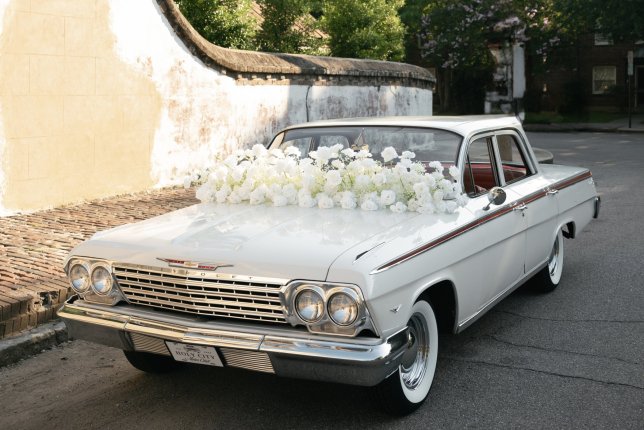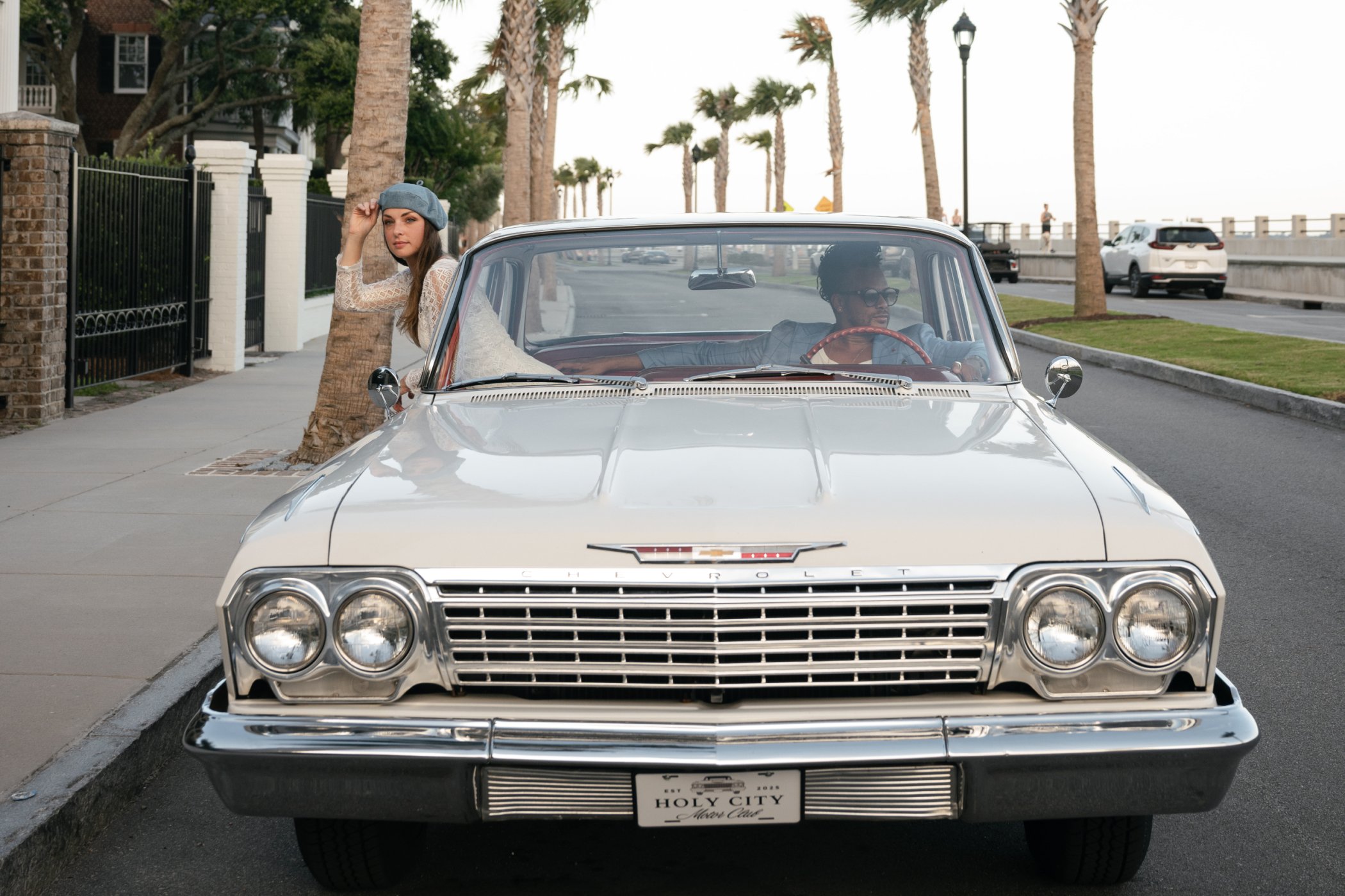On your wedding day or event date, our team will deliver the fully-detailed 1962 Impala to your venue or photo location of choice within the Charleston, SC area. When it’s time to ride, your personal chauffeur will assist you into the vehicle and transport you to your next destination. Whether it’s the ceremony or reception you’ll enjoy a leisurely, graceful cruise in vintage comfort and style. *Please note Penny does not have air conditioning (hand held fans are provided for comfort)