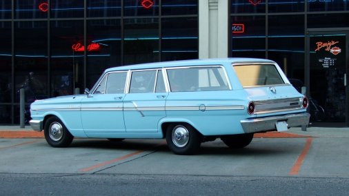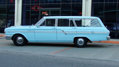 Very nice survivor, Sky Blue with two-tone Blue vinyl interior Ranch Wagon with matching, rear-facing jump seat. 260V8 with 2 speed Fordomatic transmission, power steering, AM radio and aftermarket cruise control.