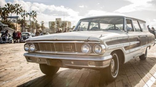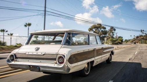 1964 Ford Country Squire Wagon with seats for 9. Great beach cruiser for photo shoots or events. Background car used in Tarantino's "Once Upon a Time in Hollywood." Not available for self-drive.