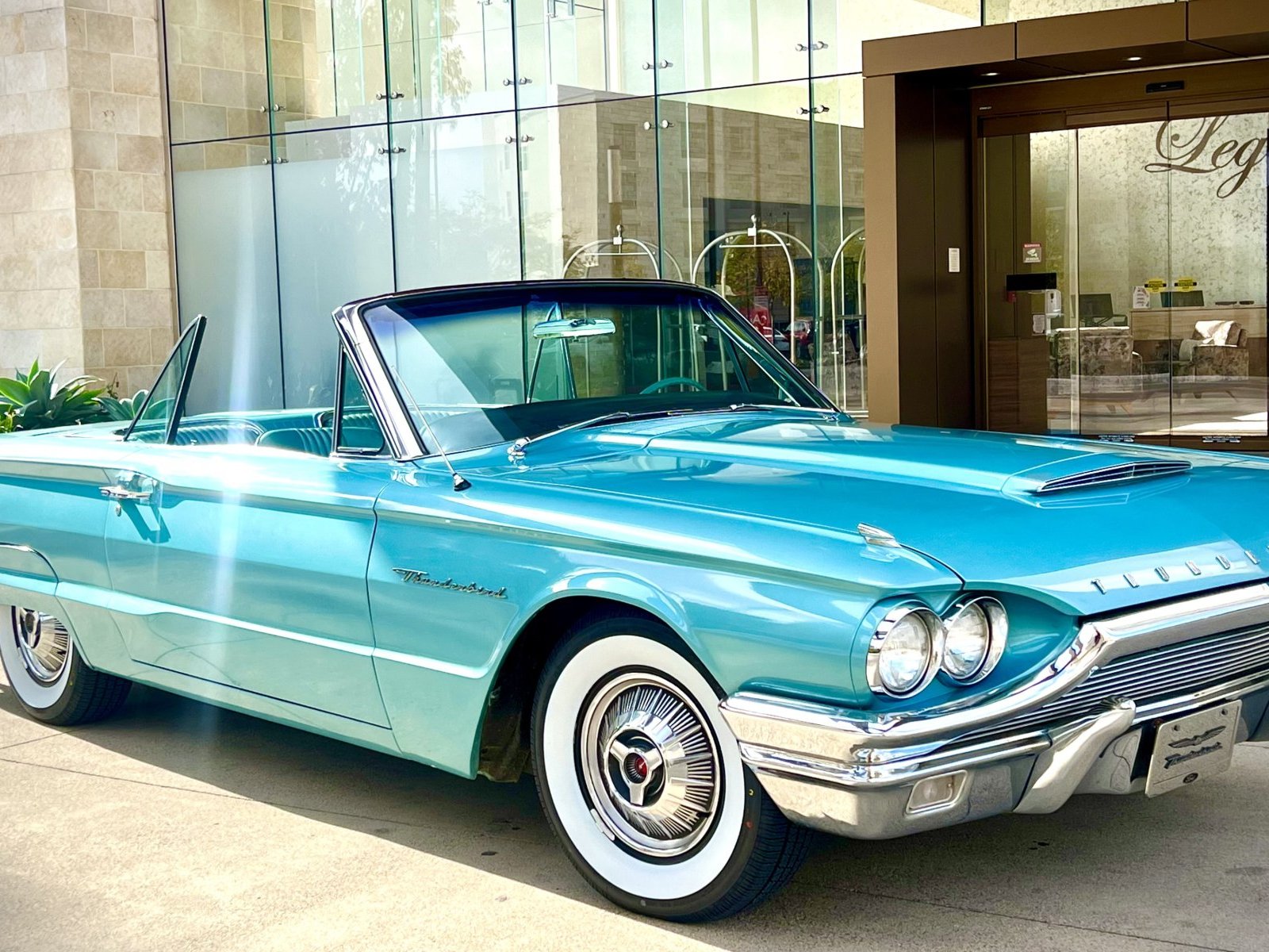 1964 Ford Thunderbird convertible with power retractable top in a beautiful turquoise color! This vehicle is production company owned and can be transported on flatbed trailer to your location. We are available to travel!