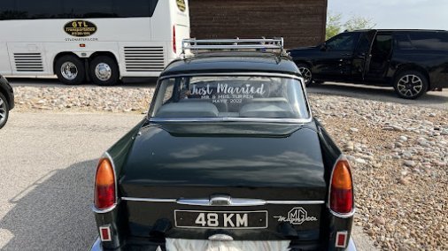 Classic British sedan. Only running one in the United States! Plush carpet and comfortable seating. Does not have A/C (please make note if wanting to rent in warm months)! Car will drive on the highway but at speeds around 65mph. This is a right hand drive vehicle which would surely stand out in any situation. Please understand that being a vintage vehicles over 50 years old, highway drives are a bit noisy (and windy if the windows are down). There is heat, but nothing compared to a mondern vehicle. I can assist with wedding decorations as necessary. For those traveling from wedding venues to hotels, the trunk is large and spacious. Can easily hold 2-3 full size suitecases.