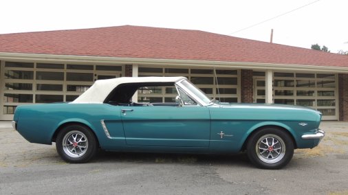 8 cylinder, manual four speed top-loader transmission, original Ford Mustang color of Twilight Turquoise. Console and standard blue interior. Styled steel wheels, white power top. AM/FM radio (non-stock). Original working AM radio can be reinstalled for photos if desired.