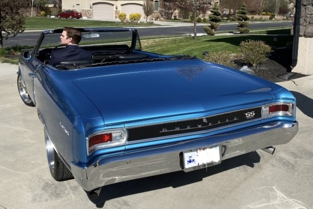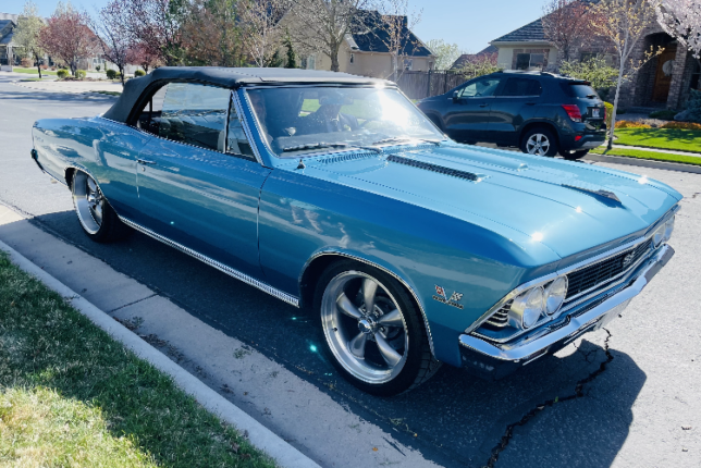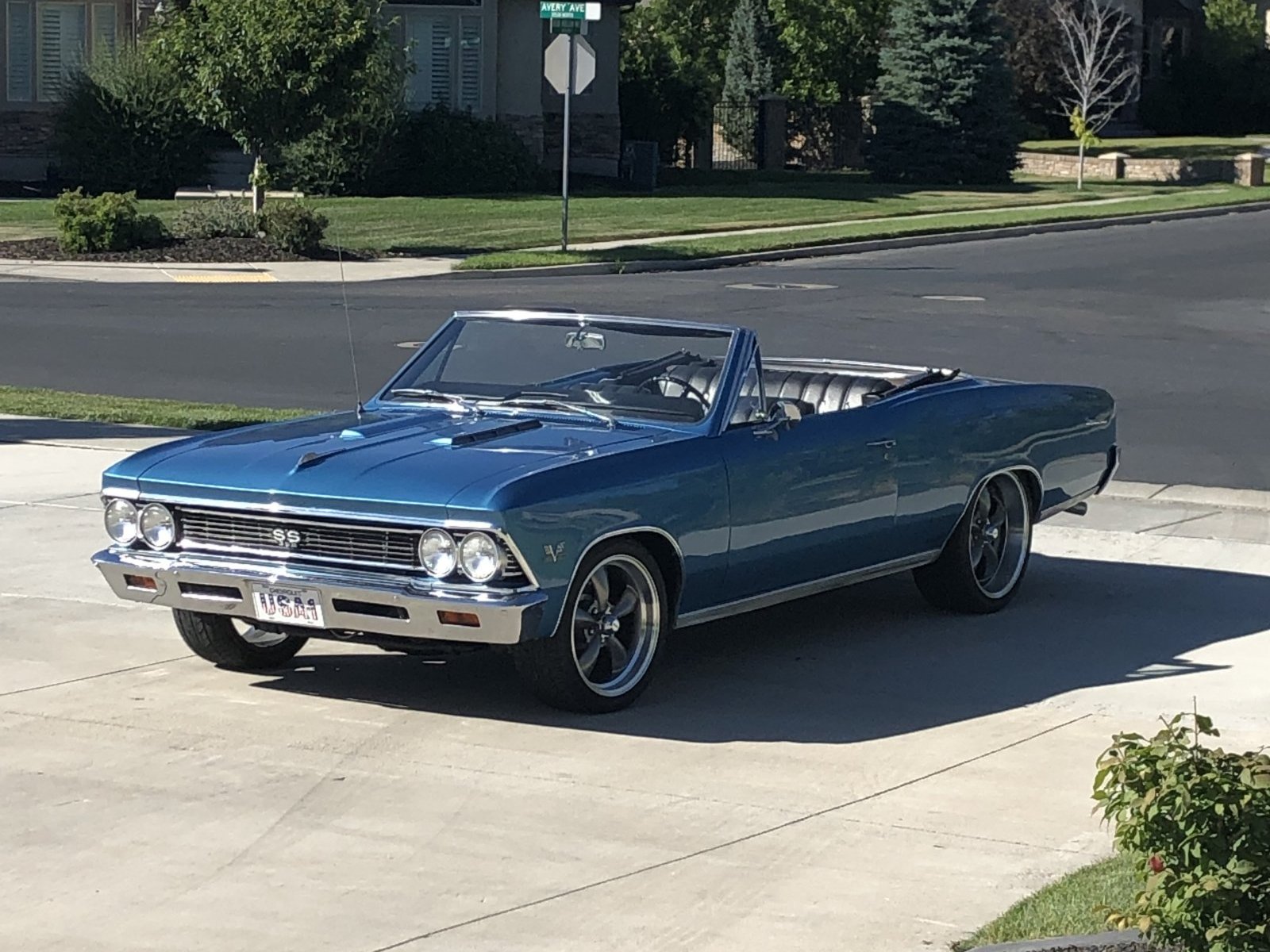 1966 Chevelle Convertible. Beautifully restored and an eye catcher wherever it goes. Stunning blue color with black interior and black top. Perfect for your special event! Partial day rentals available as well, including weddings, parades.