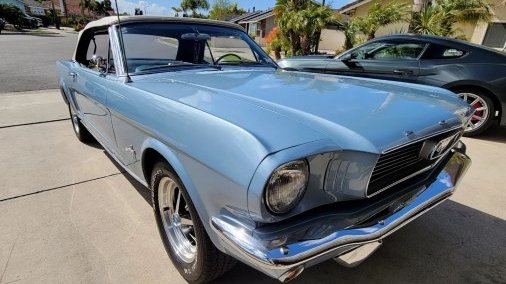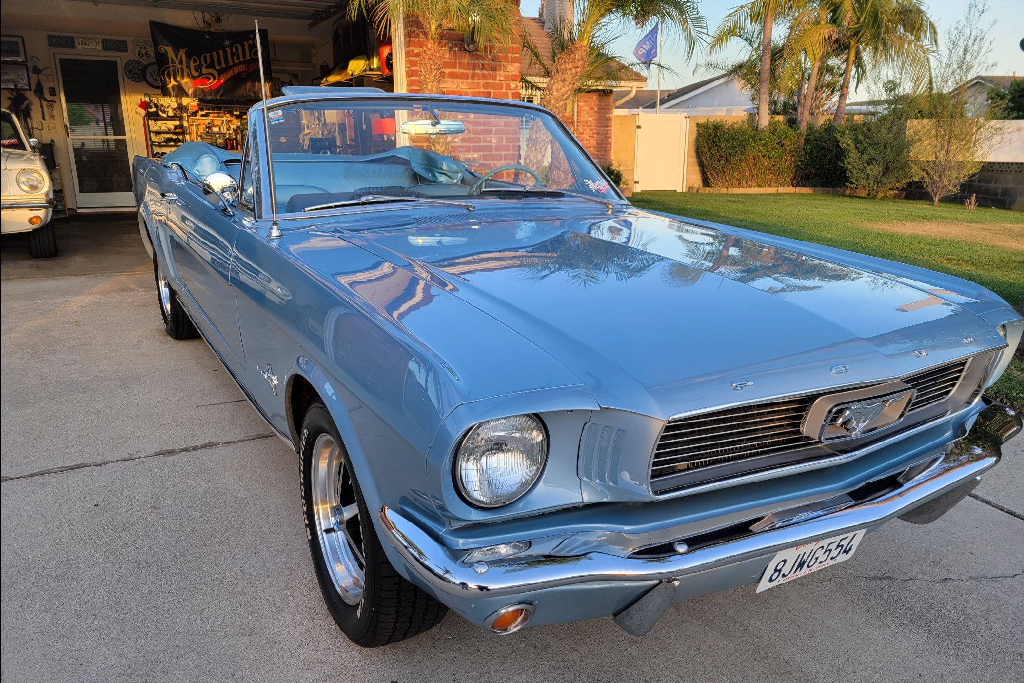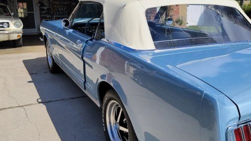1966 Silver Blue Metallic with a white convertible top. Rare color combo; 1 of only 299 made with these options and in-line 6 Sprint 200 engine. Excellent condition
