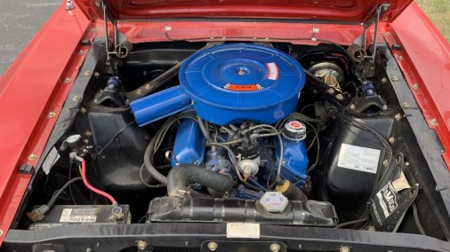 1966 Ford Mustang Fastback Signal Fire Red with beautiful white interior 289 c.i. V8, Cruise-O-Matic Automatic transmission, Front disk brakes, AM radio, Manual steering, styled steel wheels. * No seat belts - came from the factory that way. This car is a pleasure to drive and gets thumbs up everywhere it goes.