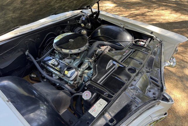 ENGINE COMPARTMENT: It has its original 421-338 motor with all stock manifolds, valve covers, air cleaner etc. It even has reproduction plug wires. It's very clean and orderly. The washers are hooked up, it has hood insulation and a battery disconnect. The metal surfaces are painted neatly. It runs smooth as can be.