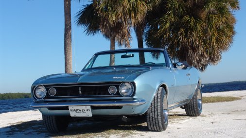 Camaro Sue, is the legend for your drive. Especialy the convertible maybe is the best design ever from Chevrolet ! This car is a beauty, it’s 327 V8 small-block under the hood, discs , power steering and automatic transmission she is a joy to drive !