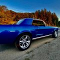 1967 ford mustang Blue metallic exterior with chrome bumpers updated led including turn signal, headlights with halos and sequential brake lights topped off with foose chrome wheels. Black interior with current upgrades like Bluetooth, gauge cluster illuminated with blue led and tilt steering.