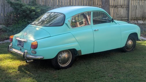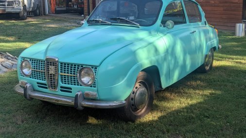 Rare opportunity to rent and drive a Saab 96! This one is recently refinished in single stage satin mint paint. Many many new parts all around, fantastic driving car with 4 on the column. The car features a sparse interior, manual brakes, and manual steering. Powered by a 1.7L Ford V4 engine. No heat or air conditioning.