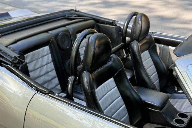 • Blacked-out accents: racing stripes, cowl hood, front spoiler, rear fuel cap, and tight-fitting black convertible top