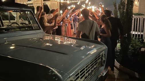 For weddings, we provide a color-coordinated step stool, Saratoga bottled water for the couple and a burlap Just Married string sign for the tailgate. All rentals include a driver.