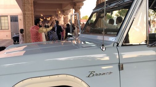 1968 Ford Bronco with hardtop or soft top. V8, automatic, power steering, power front disc brakes, retro sound. Sky View Blue with Oxford White highlights. Black interior. Used in several movies, commercials and many weddings. Full family roll cage.