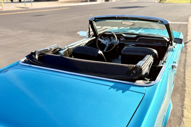 A pristine American classic from arguably the most definitive model year of the Mustang. This v8, automatic transmission convertible is finished in an eye catching electric blue metallic color that turns heads wherever it goes and photographs amazingly in various light conditions.
