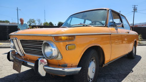 One of only a couple thousand round taillight automatic-transmission 2002s imported to the US. A survivor, with only 2 owners, original license plate and frame and everything else that came on it originally (the seats got reupholstered probably 40 years ago, and could use it again), it was located in the high desert above LA several years ago where it spent its whole life until that point. We decided not to restore it, so just got it running again, clear-coated over the rust, and are keeping it the way we found it. So it's pretty bohemian, but has a lot of charm of its own.