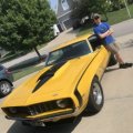 This 1969 Chevrolet Camaro coupe competition yellow with black striping, black interior. The car is powered by a 383ci stroker V8 with a FiTech fuel-injection system, 700R4 automatic transmission with overdrive and a 12 bolt posi-trac rear end, front and rear spoilers and 15″ American Racing wheels. The car includes Hydroboost power front disc brakes, Vintage air conditioning. The car has a mean purr and thunderous exhaust which barely scratches the surface of the power that idles beneath the hood.