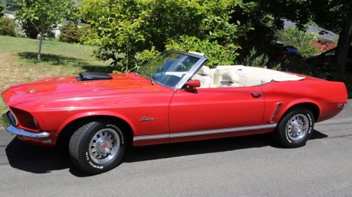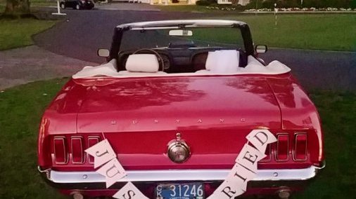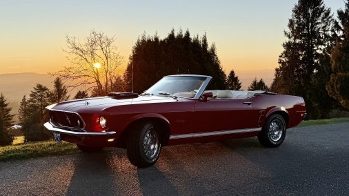 Enjoy your day in this beautiful American classic: Ford Mustang GT, Candy-Apple Red Convertible with 4 gear stick shift. Mint condition for everyday driving! White power convertible top, and a lovely white interior. Equipped with a 351 V8 . New set of tires and wheels. Seats 4 adults comfortably.