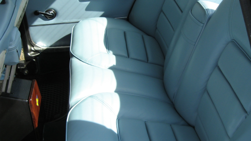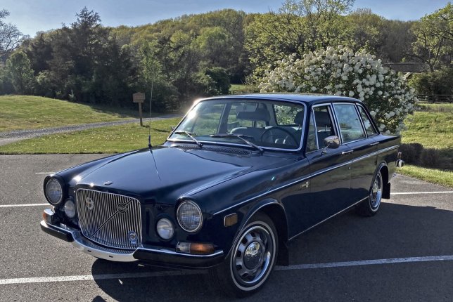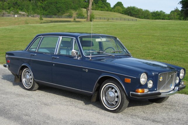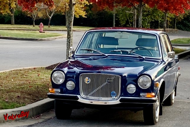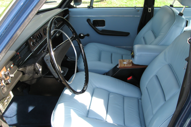 Beautifully restored 1969 Volvo 164 with automatic transmission and optional air conditioning. Standard interior light blue leather seats. Dark blue exterior paint is recent. Added center console armrest and rear minibar. Original mileage is 35K.