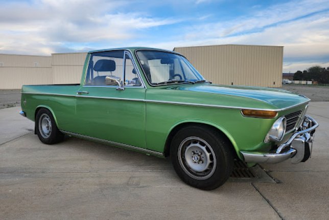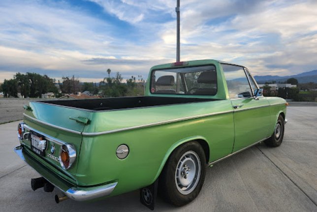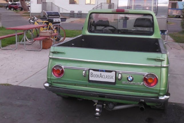 Conversion pick-up truck, built from 3 different vehicles and then completely restored by current owner. Great original 1970 BMW color, 2-liter engine with mechanical fuel injection, upgraded brakes and suspension, sport seats & steering wheel, A/C, 5-speed transmission, etc. Women think it's cute, and love the color. Men love the concept and execution, and how small it is (especially next to current pick-up trucks!). Has a trailer hitch for towing the vintage trailer shown in some of the photos (also available for rent for an additional cost), or other trailer, or just rent the truck by itself.