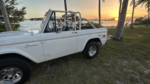 Classic 1970 white Ford Bronco that turns head no matter where she goes. 3-speed manual transmission with a 302 engine that gives a nice growl. The truck does not have a fully-covered top available. Bikini top only (covers driver and passenger). Driven in nice weather only.