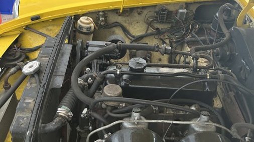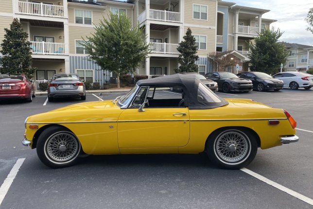 This 1970 MGB Roadster is powered by a 1.8-liter inline-four paired with a four-speed manual transmission and is finished in yellow over a black interior. Equipment includes a black soft top, 14″ wire wheels with octagonal knock-off spinners, door-mounted mirrors, a locking glove compartment, and a heater. The current owner purchased the car in 2019. This MGB is now offered by the owner for production purposes.