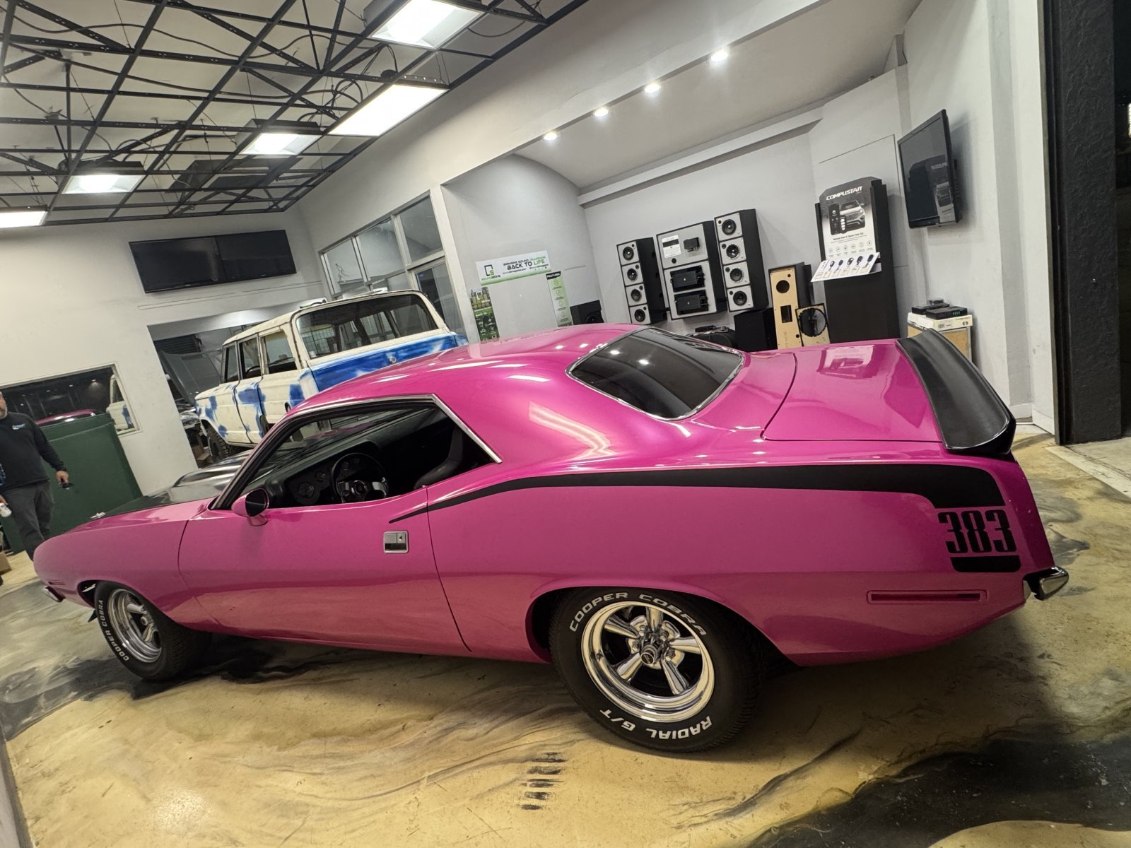 1970 Plymouth Barracuda! Freshly wrapped in a classic Panther Pink high end ppf wrap ! This iconic muscle car break necks left and right! This car will greatly stand out in any scenery, engine runs great and sounds even better, freshly done interior , new racing seats with 4 point harness, new headliner and great looking steering column compliment it well ! Great sound system that makes the drive that more exciting. Classic Supreme wheels on cooper cobra tires! There aren’t many of these that you can find, really rare and a dream car for many!
