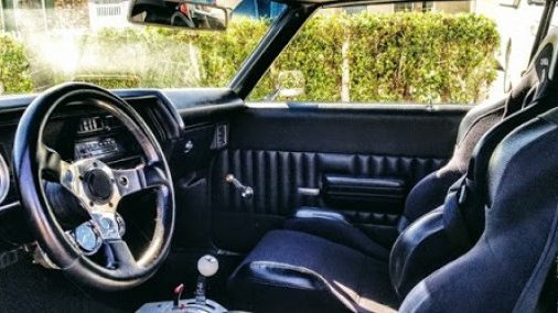 *AutoGage oil, water and amp aux gauges, B&M floor shifter, competition leather wrapped-chromed detailed steering wheel, and Chevelle floor mats.