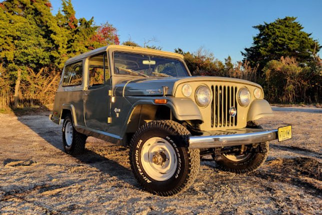 This lovingly restored 1971 Jeepster features three different top configurations - hard top station wagon, convertible, or summer bikini.