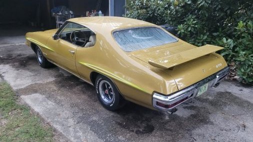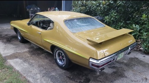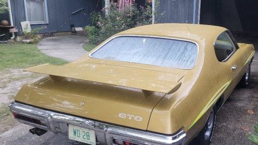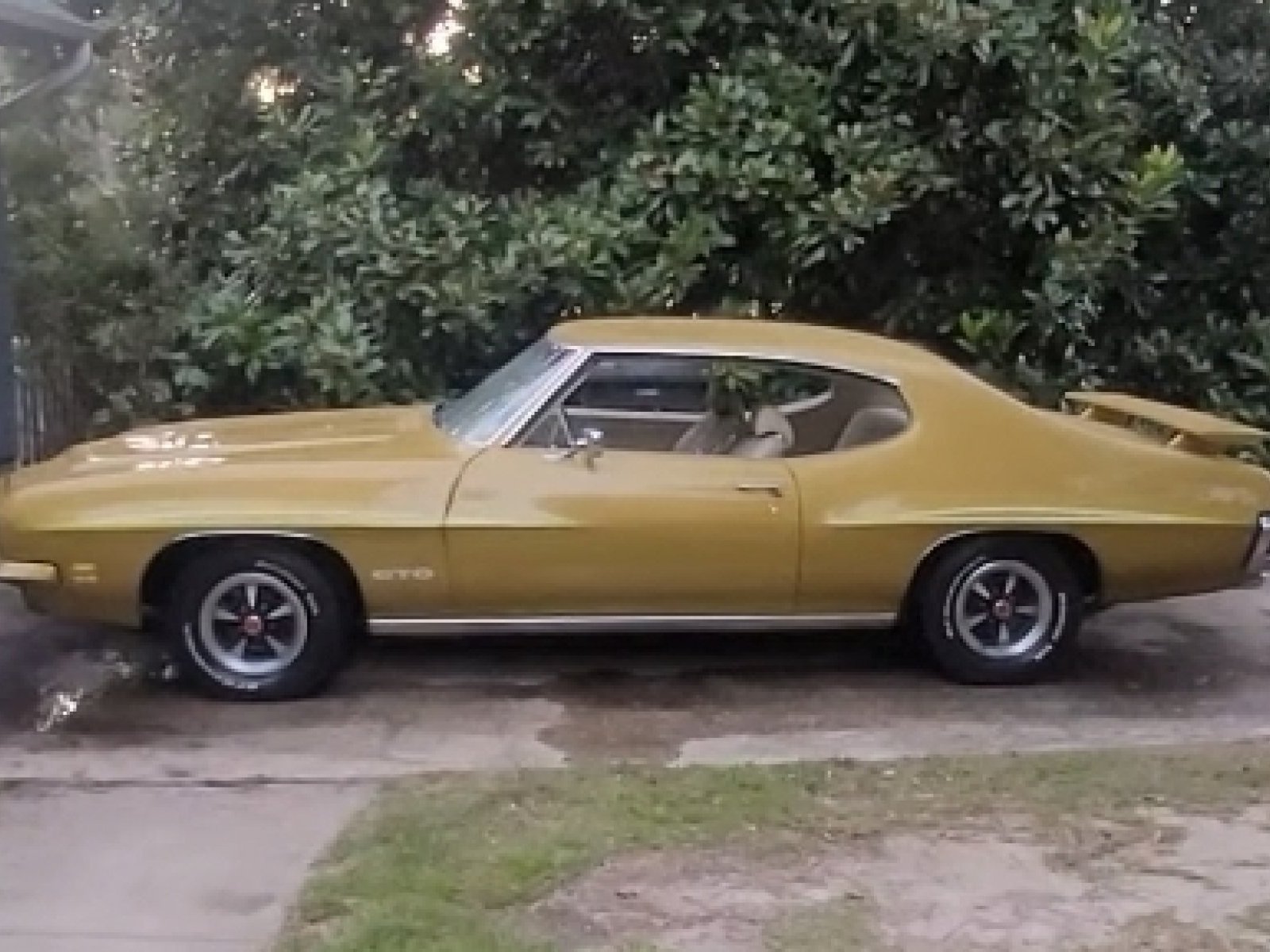 Just repainted factory quezel gold with a bit of pearl adorned with the 3 color Judge stripes and wing. Original numbers matching GTO with original white interior. All accesories function except radio which is the original, 400 V8 with Eldlebrock Quadrajet 4v carb mounted to 3 speed automatic with floor shifter. Have all documents since new built 10 1970 and sold 01 1971 to local dealership. Has an amazing history and is a solid driver. Great for highway driving as 3.08 gear allows for travel while easy on the drivetrain.