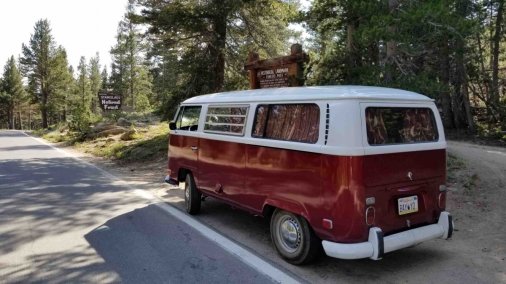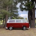 Classic Volkswagen Bus -- 70's Bay Window style (not 60's Split Window) with Metallic Pomegranate Red body and Pearl White top and nicely redone gray interior. Sony Xplod stereo with auxiliary input and Bluetooth. Available to be chauffeured or parked at events.