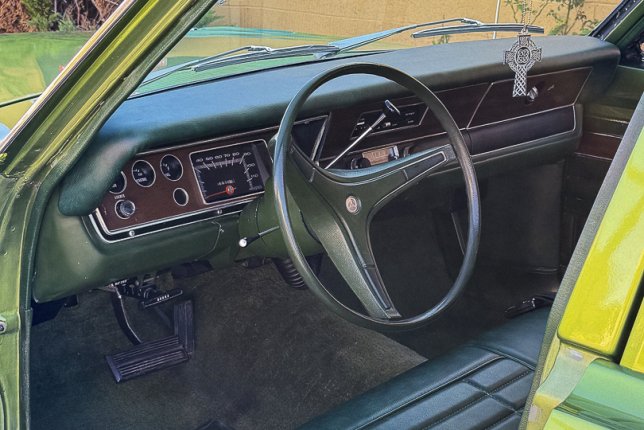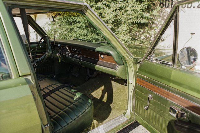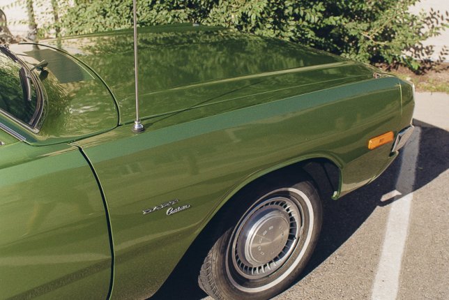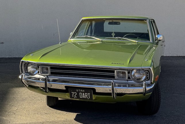 Classic green, 4-door 1972 Dodge Dart Custom with all of its original components. The interior features bench seats that can fit up to 6 people, as well as a working AM radio and heater. Under the hood, you will find the original V8 318 engine, perfect for those who appreciate the vintage look with a potent edge. It was purchased in 2023 and has been restored to driving operation by me.