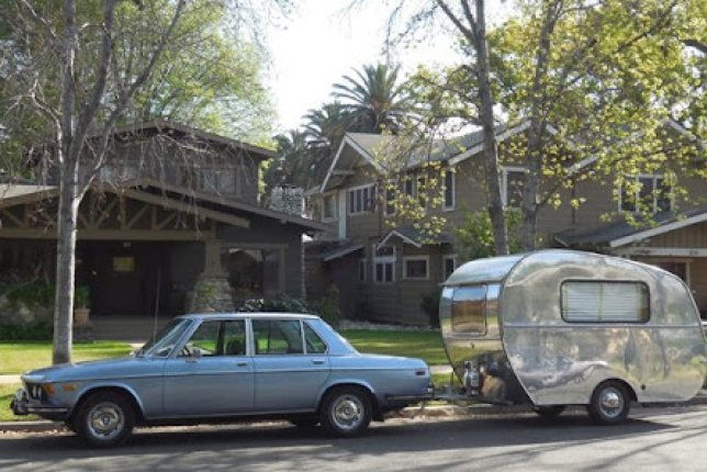 Classic BMW family car, in a pretty shade of blue and restored to its original condition. Great driving car. A/C, sunroof, AM/FM radio w/MP3 input. Trailer hitch for towing the vintage trailer shown (available for rent also, for an additional charge) or other trailer, or just show the car itself.