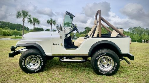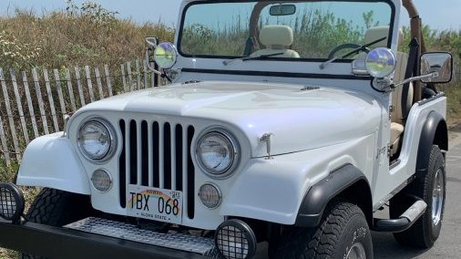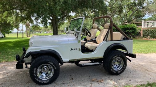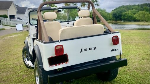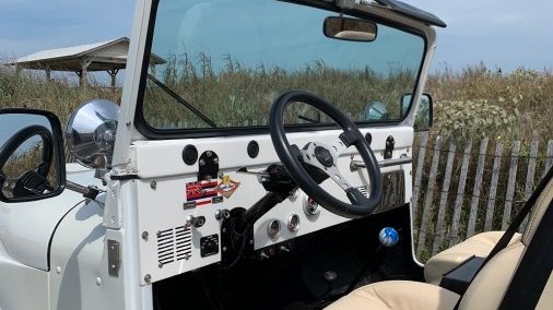 This CJ-5 has a gleaming Pearl White exterior and a light tan interior. Bright shiny chrome extras all around. Wheels and rims specifically selected to turn heads. This Jeep has been shown in several car shows around the nation and will not disappoint. Most recently, it was featured in the 2025 Rhoback ads, 2024 Zenni ads with Chase Stokes, summer 2024 ads for TJMaxx, and the Fall 2021 Vineyard Vines Catalog.