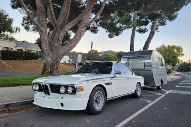 Injected version of the BMW E9 chassis (never officially imported to the US). Car has been restored, and has A/C, power steering, 218 hp, original Motorsport spoilers, wheels, and other rare parts installed. Also has a trailer hitch for towing (trailer shown is available for rent also, for an additional charge).