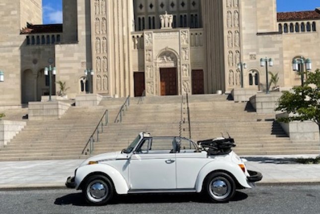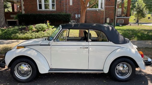 Good condition, white body with a black convertible top. Manual shift 4-speed. All original interior. AM/FM radio. Standard heat for VWs. Great for touring around town, fun and photo-whorthy.