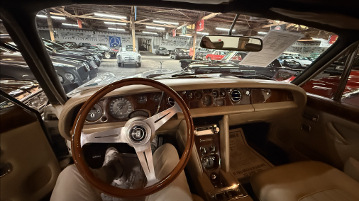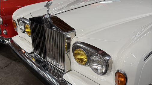 Add a touch of timeless luxury to your next production with this 1976 Rolls-Royce Silver Shadow Long Wheelbase. With its white exterior, soft sage green vinyl roof, and tan leather interior, this car oozes sophistication, class, and cinematic presence.