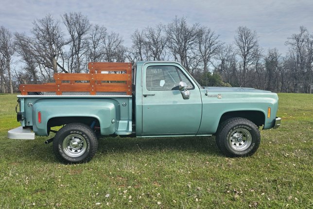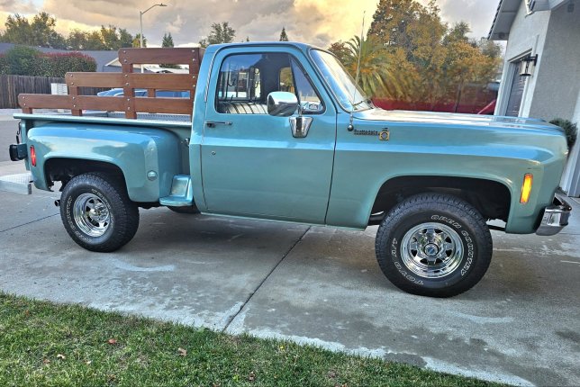 Original owner unrestored Seamist Green 1977 K10 step side, 4x4, 350ci 4bbl 4 speed. My father bought this truck new and kept it very well maintained and garaged. One repain in 1991, original drivetrain, unrestored, 185k miles. Interior excellent condition, original 8track radio and gun racks. Wood bed racks are easily removed. Has appeared in a local brewery commercial and recently in a nationwide production of a "Chevrolet See the USA" commercial by Radical Media.