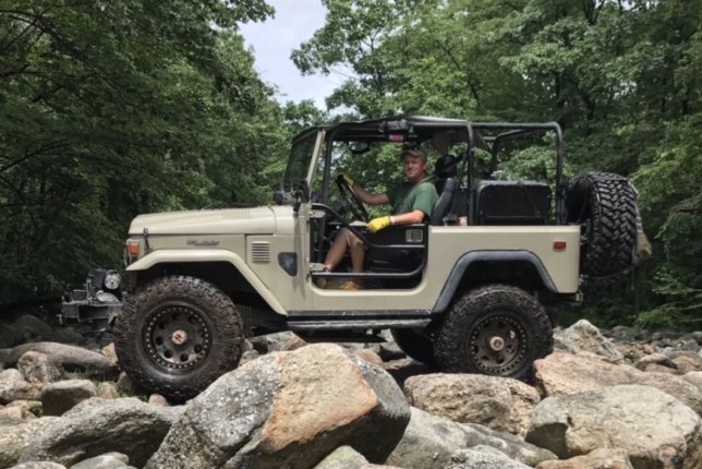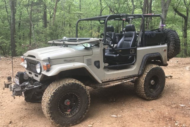 This Truck is a heavily modified example of an FJ40 that is built for maximum off-road performance. It drives very well on road with 4 wheel disc brakes and an automatic transmission. Also has the rugged look and appeal of the original off-road classic FJ40, and is easy to drive with the Automatic transmission. It’s much more powerful than the factory originals with 300 H.P. V8 power. Tires are 35” mud terrain Nitto Trail Grapplers, and the Truck is protected by armor on all sides and undercarriage skid plates. There are two side folding down jump seats in the back, with bucket seats up front. It has a 6” overall lift giving it a very aggressive stance and gets attention every where it goes. Also has front and rear air lockers, and a period correct Warn 8274 winch up front, so this truck doesn’t ever get stuck. Dune Beige is a very popular original Toyota color for these trucks, and looks great with all the Black accents