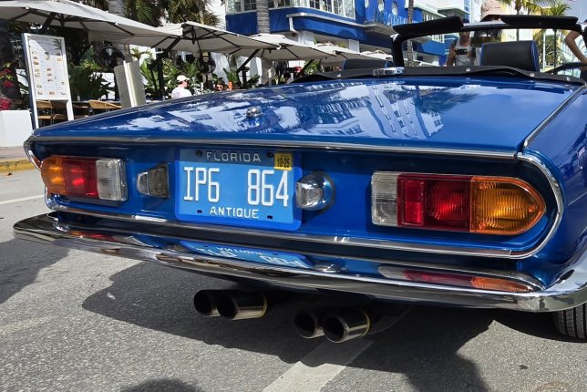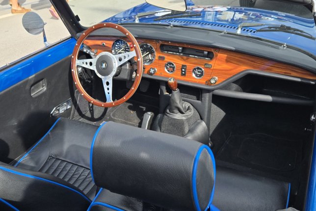 Full custom leather interior and rosewood dashboard and wooden steering wheel.