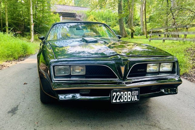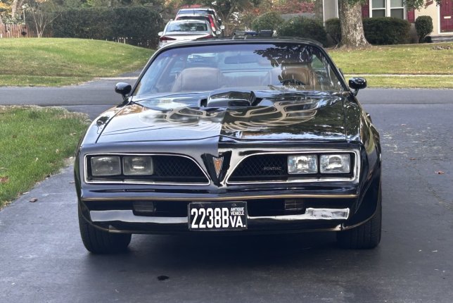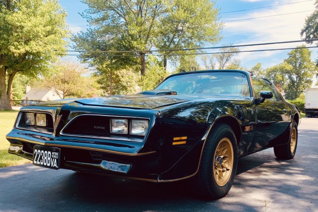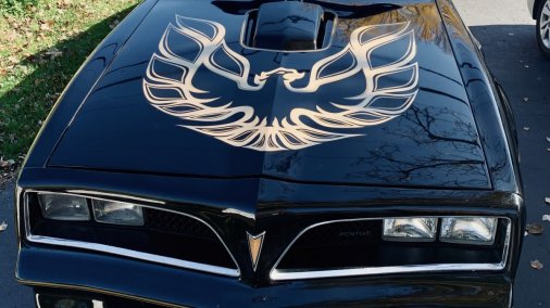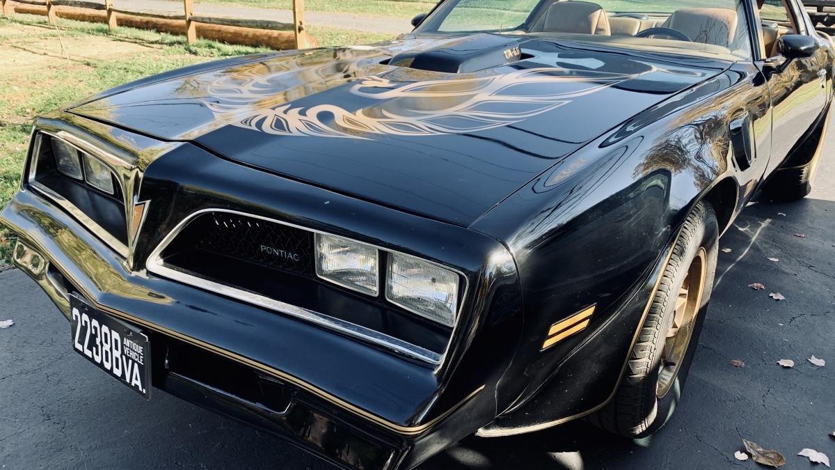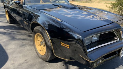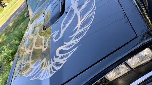 Black Trans Am, tan interior, gold eagle on hood. T-tops. No AC. Great condition.